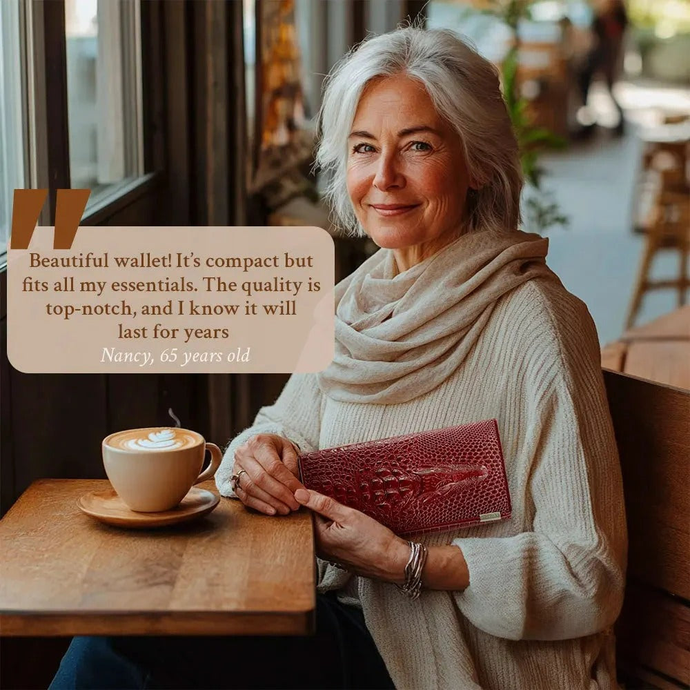Caroline - Luxury Crocodile-Embossed Leather Wallet for Women